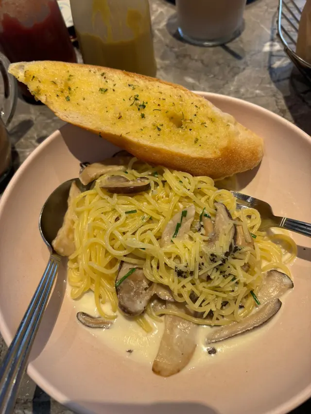 呢間以前係我係坑口嘅日常飯堂,以前八十零蚊有嘢飲配意粉加蒜蓉包,味道對得住價錢,但呢幾日再去睇返餐牌完全變晒,基本上意粉加成二三十蚊,套餐得返三個選擇一個肉醬飯,一個叉燒飯,咁我就叫咗個叉燒飯,非常驚嚇,觀眾自己睇吓啲顏色似唔似叉燒?根本就係豬扒上咗啲叉燒醬就當係🫠🫠🫠,而且個味道一啲都唔好食,感覺上任何一間茶餐廳質素都好過佢,基本上唔會再去幫襯。而我個朋友叫咗個明太子意粉,食落去同以前比又係差好遠,得過鹹味。依家再去幫襯真係智商稅。如果唔怕中伏嘅可以去試吓。…查看更多