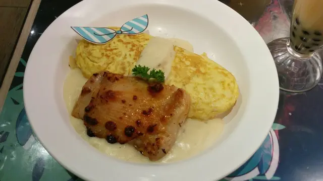 呢一間Cafe都食過幾次主要當然因為佢哋嘅動畫主題嚟最近先發現佢哋最新嘅主題係刀劍神域可能出呢篇文章嘅時候已經完咗但都希望俾各位參考一下佢哋嘅食物質素環境同之前幾次差唔多都一樣有好多動畫嘅畫面喺牆做裝飾有一啲角色嘅企牌可以比大家影相今次食物設計方面就有啲失望幾個菜都加一張米紙就成為嗰一個角色嘅菜式不過主要都係食物嘅質素為先咖喱芝士焗牛柳粒飯係唔錯嘅因為應該用咗沙嗲王本身嘅咖喱食落有少少辣,芝士都幾香牛柳粒都有牛味且份量足夠朋友食嘅蛋包飯就略為普通同埋份量唔夠,食完唔係好飽飲品嚟講士多啤梨冰沙好淡唔夠甜亦都冇乜士多啤梨味花茶我冇飲到就不評論了總括而言中規中矩今次設計方面較之前遜色食物質素一般但今次我發現除咗有主題嘅Menu選擇之外仲有Standard Menu呢個係我幾欣賞嘅地方查看更多