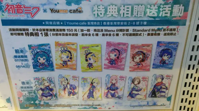 *** 遲寫的食評****話說今個7月youme cafe 舉辦了初音主題cafe ,二話不說就透過網站去預約去朝拜我偶像~~~去到現場,滿滿都是V家的,作為粉C 的我同朋友係開心到爆~因爲早到了,職員都好好給我們提早入去。坐低叫食物,叫了一個白咖喱豬扒飯同叫了意粉(如果無記錯),還有2-3杯飲料(因爲可以送杯墊)同埋一份pancake 甜點。讚:食物份量比之前多及味道上係好左(我煮食部份直接給了2/F 的沙爹皇處理返。)改善:甜點方面希望可以在視角上花更多心思吸引更多fans 來食整體上有所提升,希望持續!查看更多