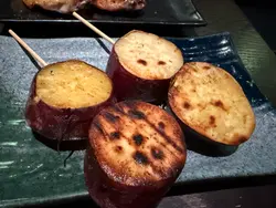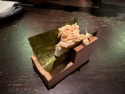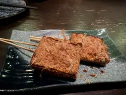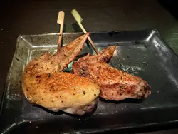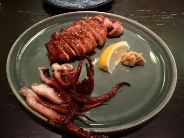 This Japanese izakaya bar is located on Wyndham Street in Central. With the approach of Halloween, the neighbourhood has become busy, but surprisingly, we are the only table on the night, even till when we finished dinner.We are seated at the dining area with a robatayaki open kitchen at the back. The place has dim lighting, using dark wooden furniture, with different Japanese cultural decors like posters and lanterns to recreate an izakaya atmosphere.After ordering our drinks of Lychee Soda ($65) and Large Sapporo Beer ($78), the meal started with Snow Crab Handroll ($58). The crab meat is mixed with tobiko and spicy mayo, and with sushi rice, wrapped in a crisp nori sheet. Decent in taste.Next, we have a number of skewers. Yaki-Tofu ($68 for two) is a dried tofu that has been grilled to golden brown, brushed with special sauce during the process to infuse with taste, then sprinkled with some bonito flakes on serving. The texture is good but a bit salty.The Sweet Potato ($76 for two) included two pieces of the vegetables, not uniformly grilled to the same degree so each piece ended up showing different colours. The taste is nice though, having good sweetness and also not dried out.Tebasaki are Chicken Wings ($96 for two), with a crisp skin, juicy and moist flesh. Seasoned with shichimi powder and sesame helps to bridge the lighter taste of the meat with flavours. Quite nicely done.The final skewer was Sunagimo, which are Chicken Gizzard ($76 for two). With a bouncy and nice bite, the gizzard was seasoned well, and also did not feel dry from the grilling. This was my favourite among the four.Trying their robatayaki, we had Whole Squid ($158). The marinade is decent, with a bit of grated ginger on the side as condiment, the squid is quite tender and not rubbery. It was only lukewarm in temperature however so affected the enjoyment.Then comes Ebi Furai Maki Roll ($108). The deep-fried prawn was used to prepare a maki roll, and on the surface the roll was coated with tobiko, giving a fun poppy texture. Taste was ok, but the presentation was a bit lacklustre though.Finally, we had Slow Braised Pork Ramen ($128). With soy dashi, the ramen was of appropriate bite, with large pieces of braised pork soft bone, bamboo shoot pieces, and soft-boiled egg. The hot soup was comfortable to the stomach.There was not much service, as we had to order through QR code, and throughout the night the staff did not come to check in with us, despite there are no other customer. The bill on the night is $1,063 which was expensive considering the food we had. Not my place.…さらに見る