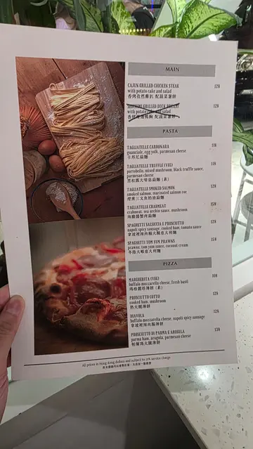 一間以純白色略帶文青風的cafe, 讓人有清新而輕鬆的感覺, 如果空間再大一點就更加好 🙂 Cafe位於一條小巷內, 相對有點偏僻, 幸好它白色裝潢十分搶眼, 否則都容易被忽視。 海膽醬蟹肉扁肉麵 $158意粉非常有咬口, 厚但不會只有麵粉質感 😚 配上非常掛汁的海膽醬, 會有海膽的鮮甜, 而且蟹肉份量亦相當足夠, 基本上每一口都能吃到蟹肉, 非常豐富! 🤩帕爾瑪火腿Pizza $138Pizza偏薄身, 側邊脆到像餅乾, 中間軟腍, 輕微麵包口感, 份量足夠2人食用。配料有大量火箭菜, Parma ham都不少, 再加點芝士, Pizza底是蕃茄醬, 蕃茄的酸, 火箭菜回甘及Parma ham加芝士都鹹香配搭得很好。加$88可以轉餐, 可以點1個前菜加甜品煙燻三文魚牛油果沙律 原價 $118意式冷切拼盤 $138其實轉餐很化算, 因為單點1個前菜都已經高於$88, 2款前菜都非常清新, 特別要提它佢的煙三文魚超新鮮, 非常好吃 😋 另外未經煮食過的Parma Ham跟煮過的又有分別, 我就比較喜歡未煮過的。Tiramisu 原價 $48這款甜品是餐廳推介, 果然沒介紹錯, 會吃到微微酒香, 𢳂到最底會有咖啡, 裡面有麵包, 都被咖啡浸到軟腍, 據稱這種比較juicy的Tiramisu才是最正宗的做法 😙 重中之重就是它的咖啡不太苦, 所以很適合我, 朋友就相反嫌不夠苦 😬 所以都是看個人口味。餐廳主打手工意粉, 除了手工意粉, 其他食物整體都有水準 ☺️ 由於cafe細小, 並且有水準, 容易坐滿客, 所以可以預先留座免得用餐落空。…查看更多
