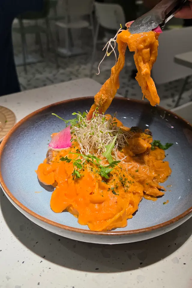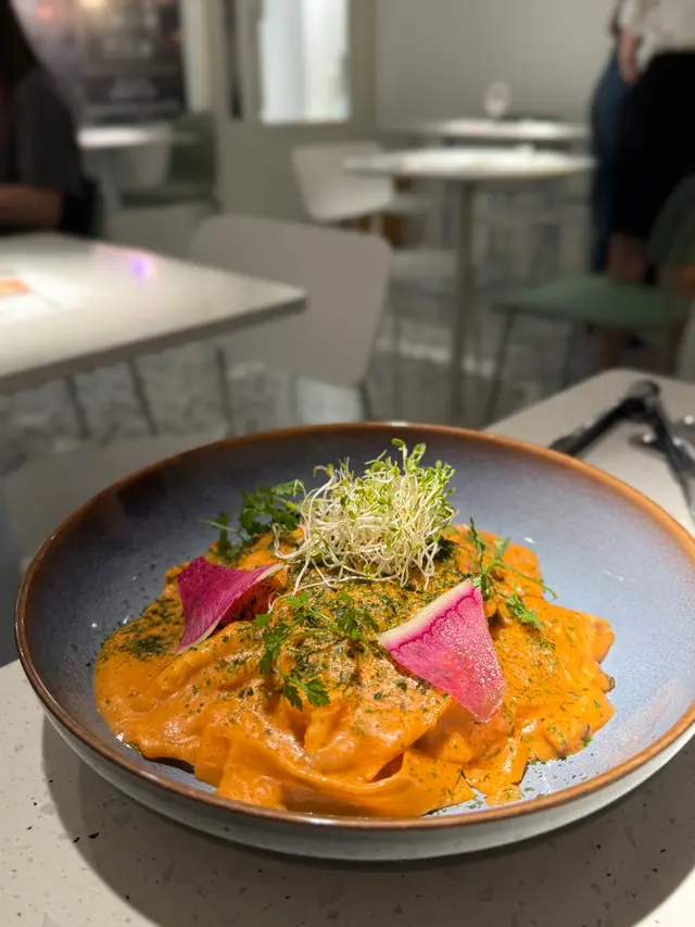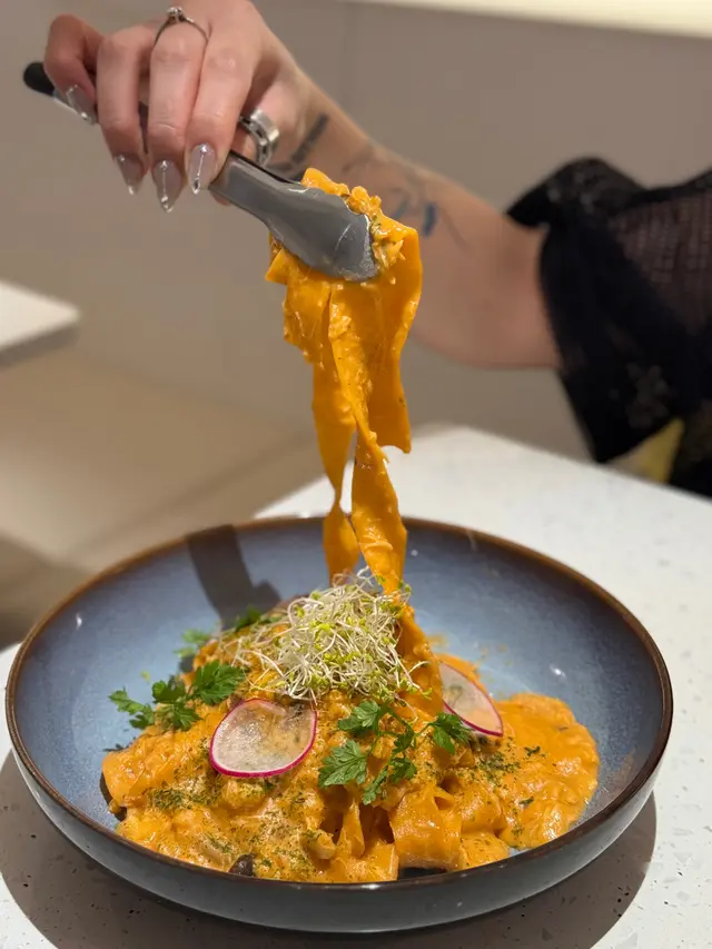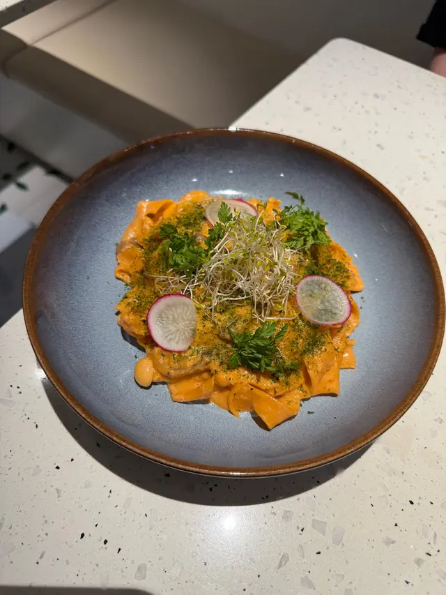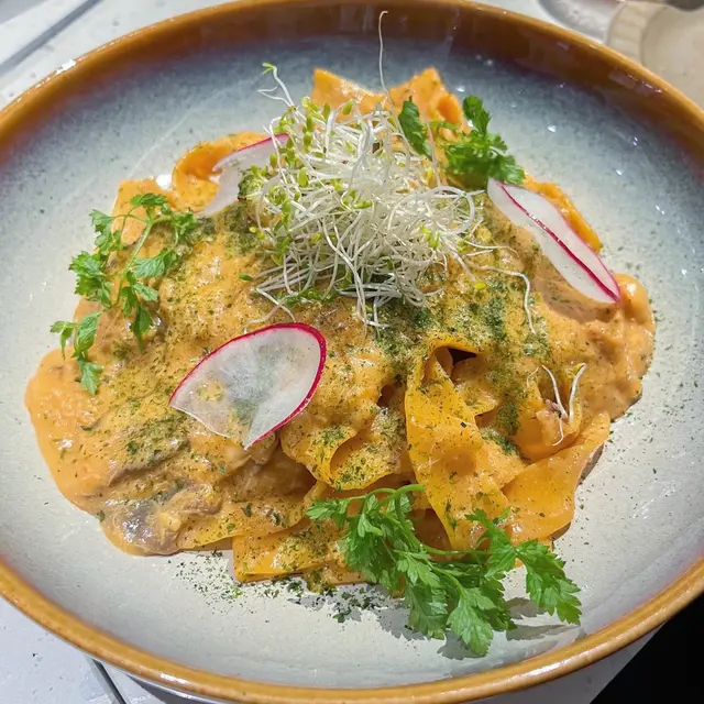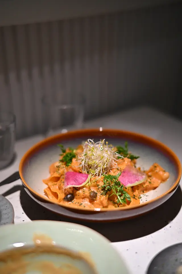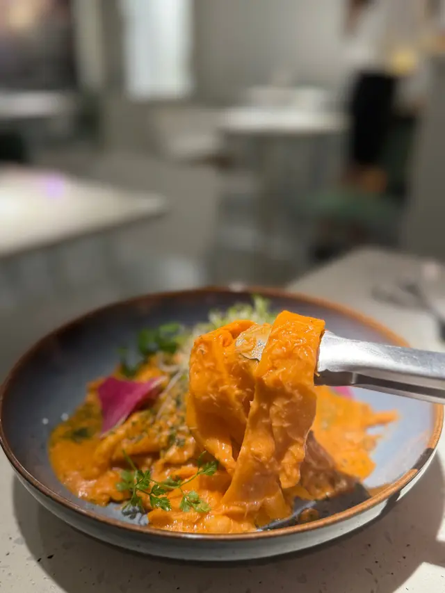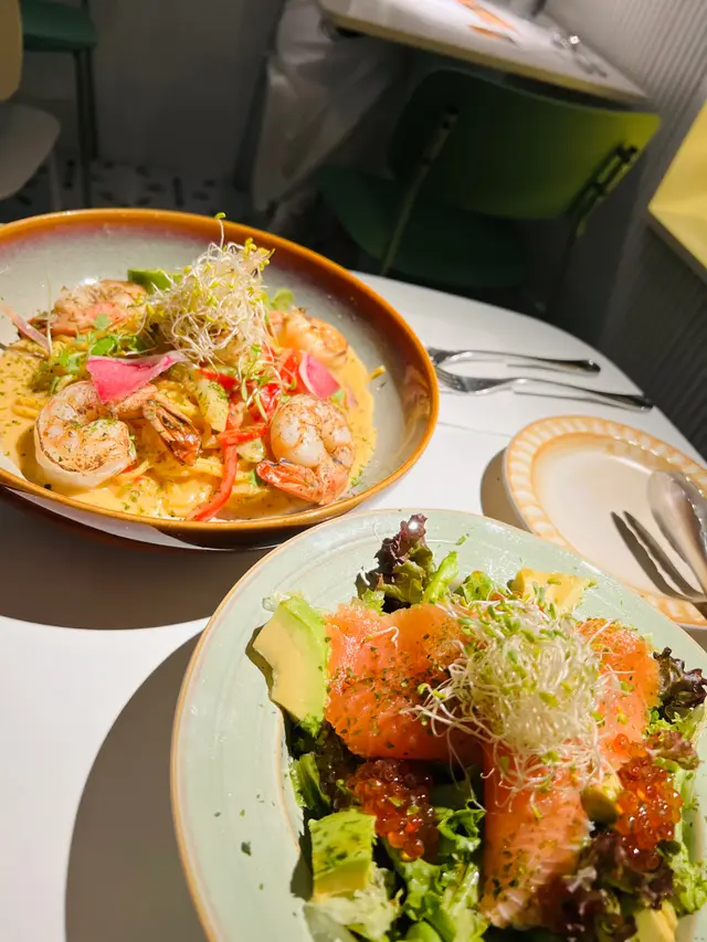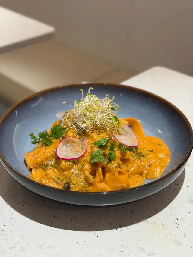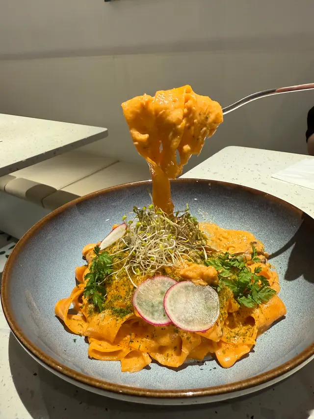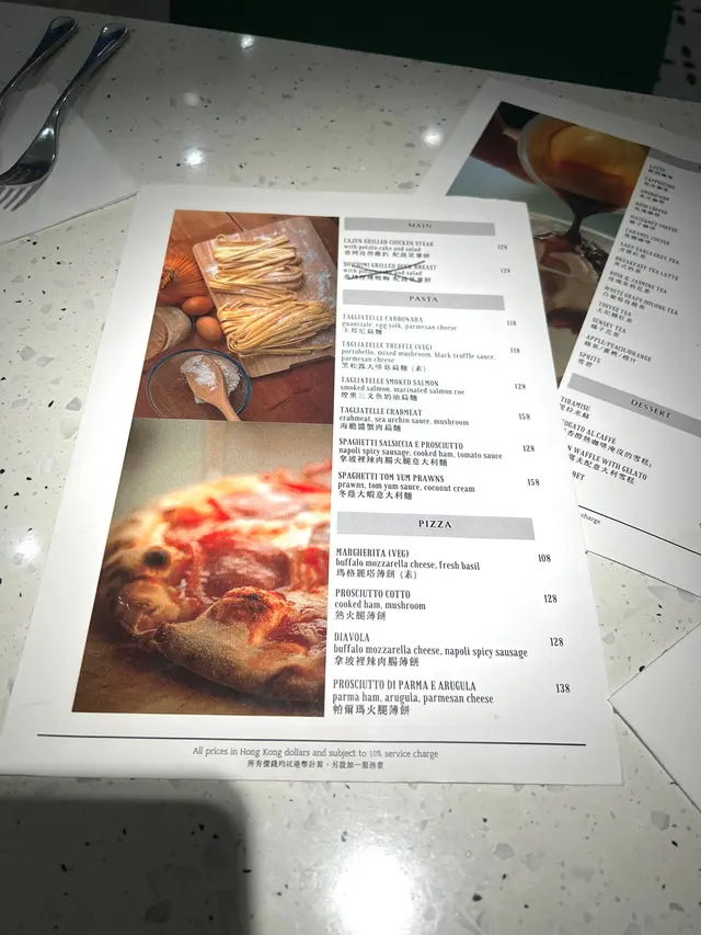 一間以純白色略帶文青風的cafe, 讓人有清新而輕鬆的感覺, 如果空間再大一點就更加好 🙂 Cafe位於一條小巷內, 相對有點偏僻, 幸好它白色裝潢十分搶眼, 否則都容易被忽視。 海膽醬蟹肉扁肉麵 $158意粉非常有咬口, 厚但不會只有麵粉質感 😚 配上非常掛汁的海膽醬, 會有海膽的鮮甜, 而且蟹肉份量亦相當足夠, 基本上每一口都能吃到蟹肉, 非常豐富! 🤩帕爾瑪火腿Pizza $138Pizza偏薄身, 側邊脆到像餅乾, 中間軟腍, 輕微麵包口感, 份量足夠2人食用。配料有大量火箭菜, Parma ham都不少, 再加點芝士, Pizza底是蕃茄醬, 蕃茄的酸, 火箭菜回甘及Parma ham加芝士都鹹香配搭得很好。加$88可以轉餐, 可以點1個前菜加甜品煙燻三文魚牛油果沙律 原價 $118意式冷切拼盤 $138其實轉餐很化算, 因為單點1個前菜都已經高於$88, 2款前菜都非常清新, 特別要提它佢的煙三文魚超新鮮, 非常好吃 😋 另外未經煮食過的Parma Ham跟煮過的又有分別, 我就比較喜歡未煮過的。Tiramisu 原價 $48這款甜品是餐廳推介, 果然沒介紹錯, 會吃到微微酒香, 𢳂到最底會有咖啡, 裡面有麵包, 都被咖啡浸到軟腍, 據稱這種比較juicy的Tiramisu才是最正宗的做法 😙 重中之重就是它的咖啡不太苦, 所以很適合我, 朋友就相反嫌不夠苦 😬 所以都是看個人口味。餐廳主打手工意粉, 除了手工意粉, 其他食物整體都有水準 ☺️ 由於cafe細小, 並且有水準, 容易坐滿客, 所以可以預先留座免得用餐落空。…查看更多