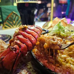 我哋好少會去一啲有Lɪᴠᴇ Bᴀɴᴅ嘅餐廳食飯,主要怕嘈,但朋友介紹嘅呢一間又Oᴋᴀʏ喎,環境幾有特色,基本上都係半包圍式嘅梳化位,個私隱度又出奇地唔錯😆牛油煎蟹餅配檸檬芥末籽蛋黃醬 $98蟹餅呈金黃色嘅外表,全個蟹餅都係蟹肉,所以都幾紮實,蟹肉味道鮮甜,配埋個檸檬芥末籽蛋黃醬,都幾惹味同開胃🤤蒜蓉牛油焗大虎蝦蕃茄醬扁意粉 $188個賣相都相當吸引,大蝦放係中間,夠哂吸睛,蕃茄醬酸酸甜甜,唔算好濃味,扁意粉就相當掛汁,大蝦蝦肉爽口彈牙 ,調味方面都相當好味🥰香煎安格斯牛頸脊伴時令蔬菜配紅酒汁 $360足足有成8安士嘅牛頸脊,齋睇個表面都非常吸引,留哂口水,切落去就已經感受到有幾咁鬆軟,叫咗五成熟,所以中間都呈現迷人嘅粉紅色,食落鬆軟極濃牛味🫶🏻 非常惹味!Dᴇᴇᴘ OᴄᴇᴀɴDeep Ocean $88由Aᴘᴘʟᴇ Jᴜɪᴄᴇ,Lᴇᴍᴏɴ Jᴜɪᴄᴇ 同埋7-Uᴘ製成嘅飲品,酸酸甜甜,蘋果味都幾香VɪʀɢɪɴPᴏʀɴ SᴛᴀʀVirgin Porn Star $88呢杯就由Pᴀssɪᴏɴ Fʀᴜɪᴛ,Vᴀɴɪʟʟᴀ,Lɪᴍᴇ Jᴜɪᴄᴇ 同Sᴏᴅᴀ Wᴀᴛᴇʀ製成,熱情果味相當突出,唔算好甜,都Nɪᴄᴇ嘅😙呢到Lɪᴠᴇ Bᴀɴᴅ由7:30至9:30,9:30到11:30就係Oᴘᴇɴ Mɪᴄ時間,大家有興趣都可以上去大展歌喉,成班Fʀɪᴇɴᴅ上嚟聽歌唱歌都幾過癮🤣…查看更多