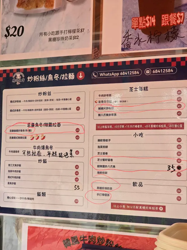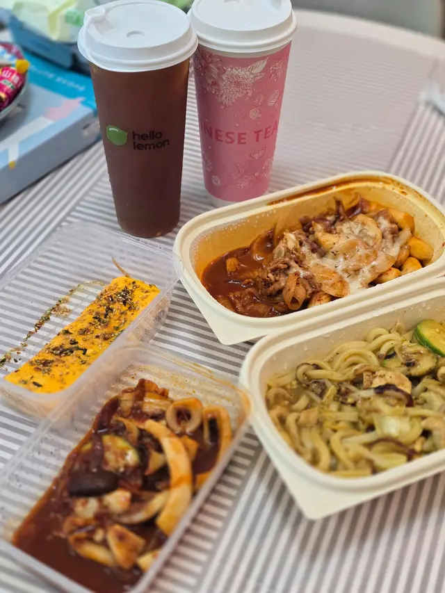 元朗新開的韓式料理小店,即叫即煮,店內座位不多。見這裡離家不遠,便選擇外賣回家,邊吃邊看電視。韓式炒粉絲 $45有雞肉、牛肉及豚肉可選,我們選了豚肉。粉絲有嚼勁,吸收了醬油和麻油的香氣,鹹香適中,不膩不淡。涼拌泡菜以菠菜入饌,微辣清新。糖心蛋經醬汁浸泡,有醬油香,蛋味香濃。後巷炒年糕 $45韓式辣醬炒年糕,加上芝士,惹味可口。年糕有條狀及片狀,讓食客一次過品嚐兩種口感。醬汁緊緊包裹,且能保持彈性。 餸料有韓國魚餅和腸仔。腸仔明顯做過工夫,不會太鹹,魚餅吸收了醬汁,入味且有彈性。甜辣醬炒魷魚 $35魷魚份量充足,爽脆彈牙,容易咀嚼。搭配洋蔥及冬菇,以甜辣醬快炒,滋味濃郁。海鮮煎餅 $35煎餅帶泡菜香味,內裡柔軟濕潤,蝦及魷魚份量十足,口感更有層次。黑糖珍珠奶茶 (跟主食+$20)珍珠數目不少,差不多每口都吃到,口感煙韌。黑糖不會太甜,奶茶茶香頗濃。手打檸檬茶 (跟主食+$7)酸度十足,茶香清爽,飯後飲用可解膩。小店看來由兩人分工,一人負責烹調,另一人則處理落單與外賣安排。拿外賣時,店員提到日後會準備紙套,方便客人攜帶飲品,照顧周到。食物份量充足,味道不俗,價格恰宜,用心製作,值得再幫襯。…查看更多