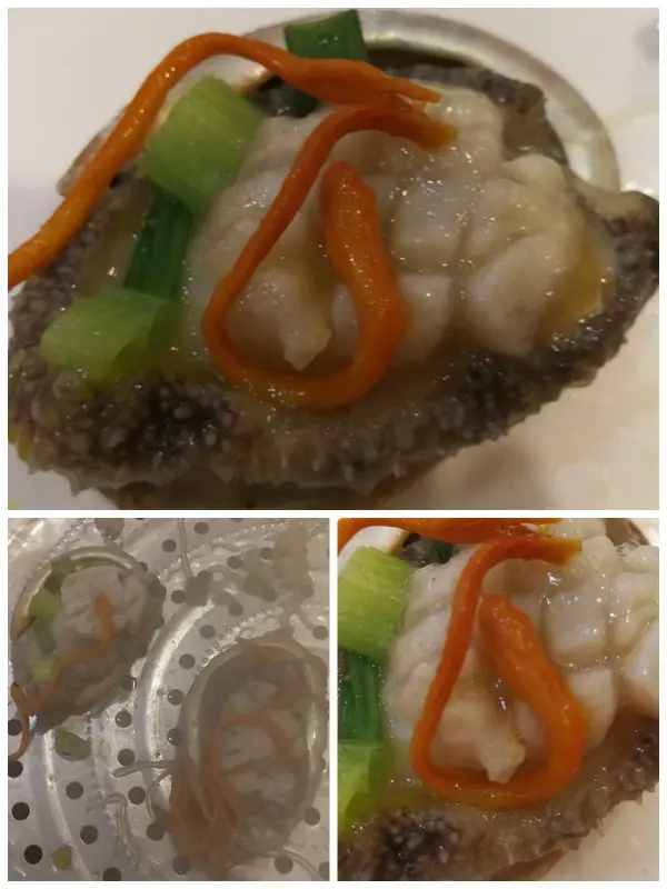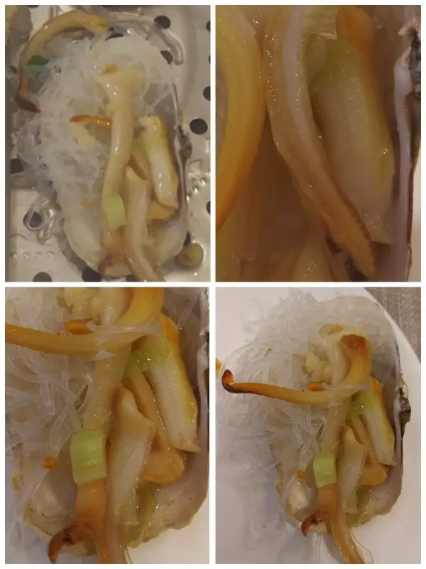 切了絲的象拔蚌, 雖然加上了蔥蒜和粉絲 一起蒸。 但是無論賣相及食味, 好像都給 其他海鮮比了下去。 猶如紅樓夢裡面的悲劇人物香菱一樣,[ 根並荷花一莖香,平生遭際實堪傷。自從兩地生孤木,致使香魂返故鄉。]