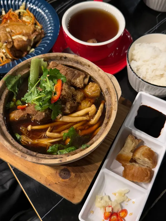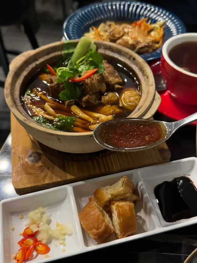 主食方面有火熱砂煲香濃肉骨茶同咖喱叻沙湯麵,肉骨茶真係今次嘅重頭戲🔥 佢嘅湯底味道濃郁,湯色呈深啡色,飲落去真係暖心又滋補,入面嘅香料味道亦好均衡,唔會太過鹹,肉骨都算多肉食唔錯👍🏻