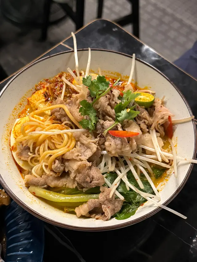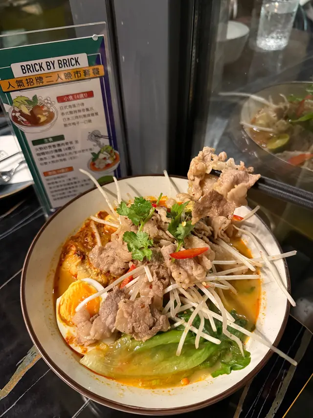 而個咖喱叻沙我哋揀咗肥牛,摻摻麵底好豐富,口感多元,裡面仲有生菜、豆卜同半邊蛋,份量十足,非常足料😝