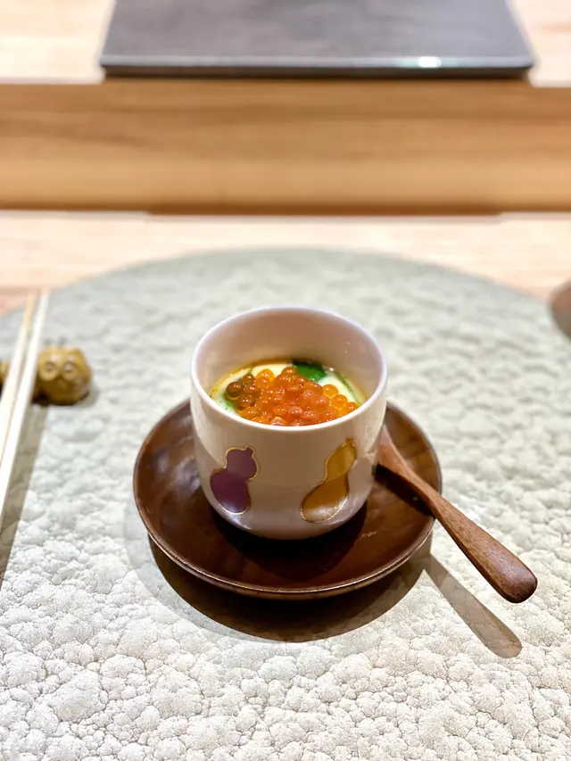 上面係大大粒三文魚籽,咬落去嘅皮會比平時嘅魚籽厚身。蒸蛋本身已經鹹鹹地好入味。仲有紫蘇葉同魚肉,食落增添口感✨