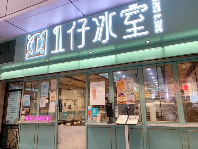 店外店內以粉藍色的設計,相當舒適又美觀。店外還有一個霓虹燈箱寫有「我是一個吃貨」,莫非老闆是一個愛吃之人才會開冰室?