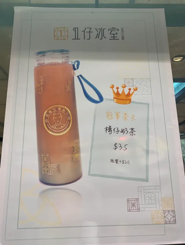 最後又點少的「1仔冰室」的奶茶,外型以藍色的設計配上金色的貼,內裡茶味出眾奶味濃郁香滑,相當出色。「樽仔奶茶」 $35,客人下一次只要再攜同樽仔前來買奶茶即減 $5。