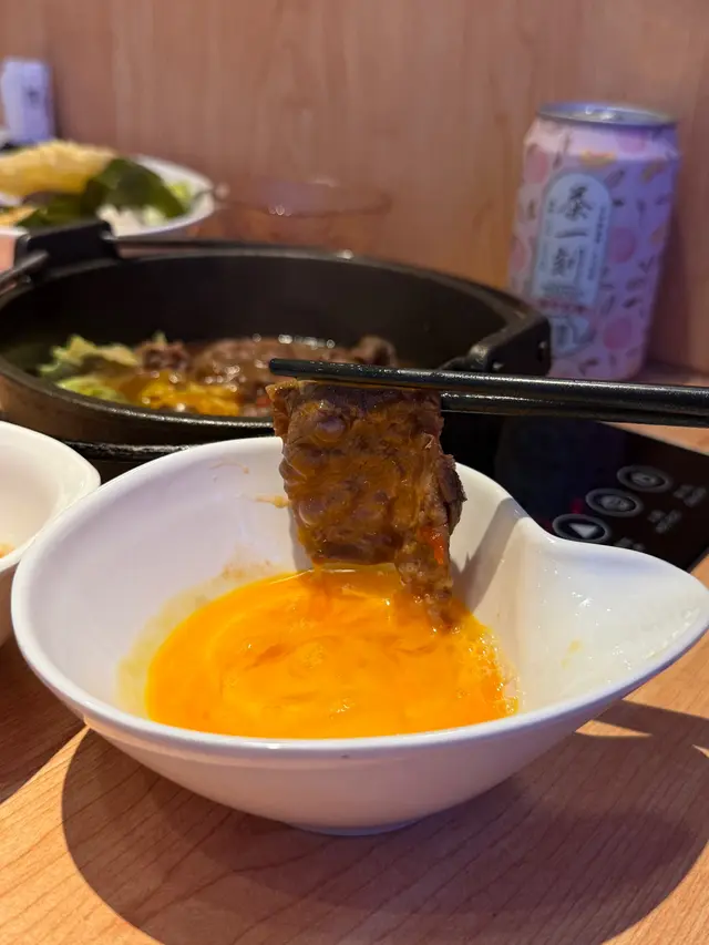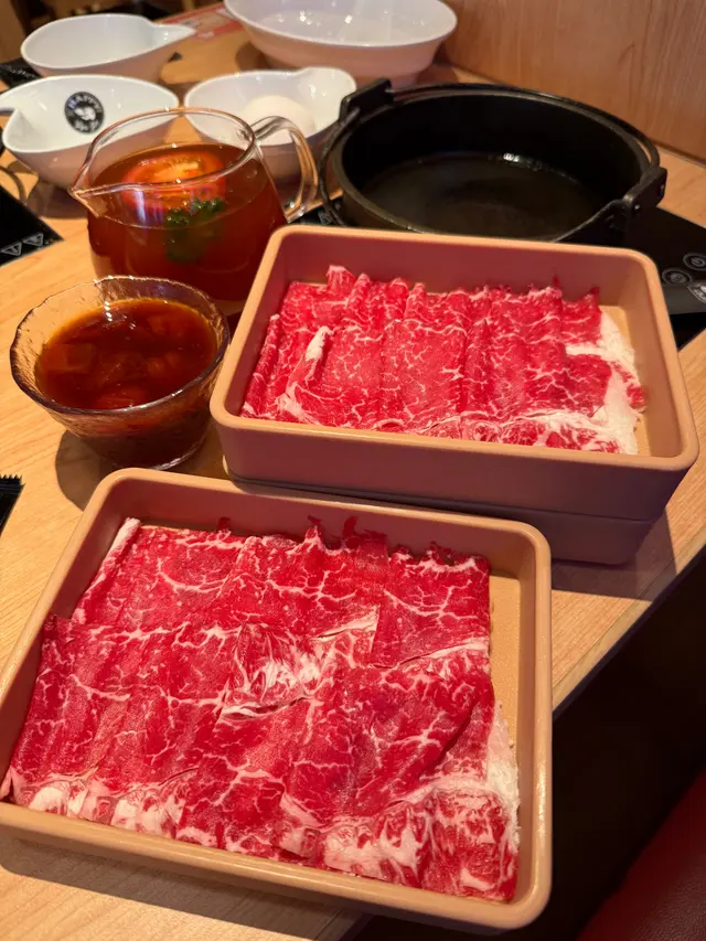 味道酸酸甜甜,店員好親切,教我哋首先將菜鋪滿,再放入牛肉,倒入特調蕃茄醬慢煮~ 壽喜燒煎香咗牛肉,油花突出,配搭蕃茄嘅酸甜,好開胃,再沾上日本蛋一齊食,非常之夾😙 之後仲可以倒入秘製蕃茄湯再打埋邊爐,大滿足😌