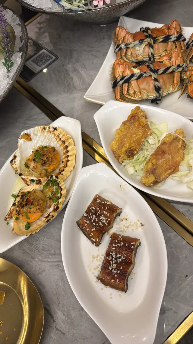刺身都好高質!!另一盤係有鮑魚,螺頭等等!!好滿足!!!泰式食物都有好多架,冬陰公湯好正!炸蝦餅好食,仲有飛天通菜,炒椰菜苗,仲有幾款麻辣食物,麻辣豬耳,口水雞♥️♥️飲品