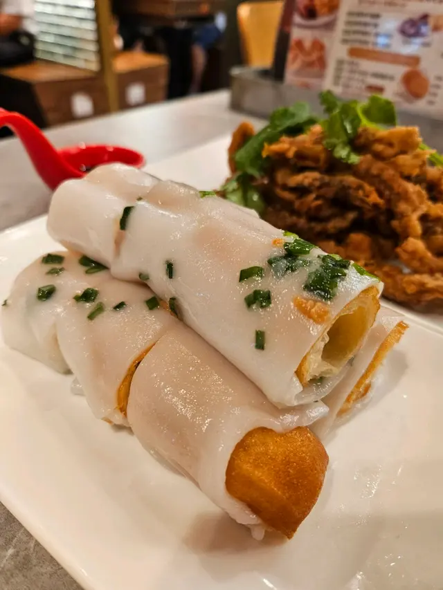 → 腸粉皮薄透軟糯,炸兩油條脆到"咔嚓"聲! 蝦米鹹香畫龍點睛。