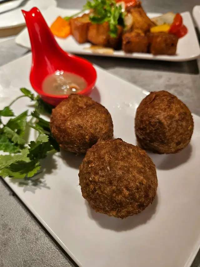→ 即叫即炸! 外層金黃脆如天婦羅,內裡Q彈有嚼勁,沾椒鹽絕配。