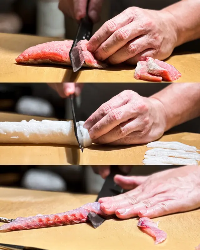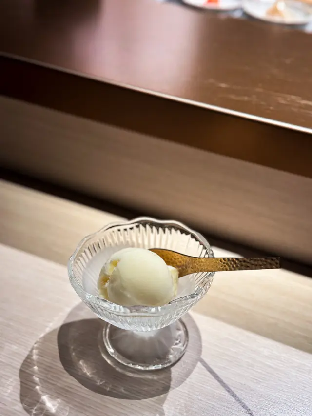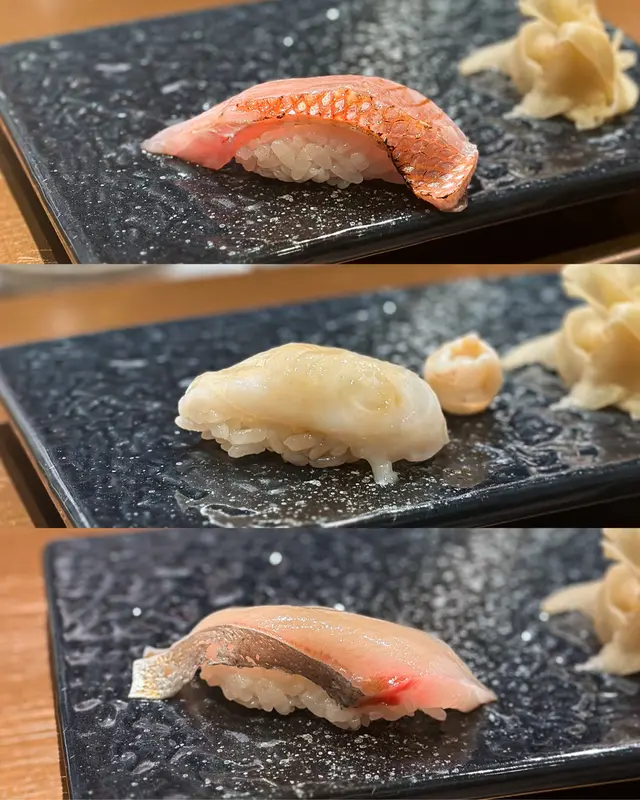 記憶點最深的是水八爪魚,其吸盤相當爽脆,沒想到原來新鮮的八爪魚口感如此;最讓人驚艷的是,腦天的口感竟然比大拖羅更柔軟,油脂感更充足,入口超香;另外,深海池魚和間八的魚香味最濃郁,好吃到想多叫一份。