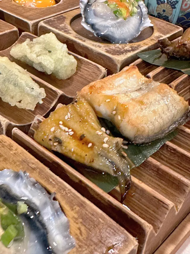日本直送象拔蚌刺身、二色燒白鰻魚🐍、手工月見燒烏丸、喜多嬉牡蠣茶漬飯🍚、天婦羅秋葵、天婦羅紫蘇葉吞拿魚蓉時令沙律🥗、喜多嬉牡蠣刺身、時合沙律同日式漬物等等。