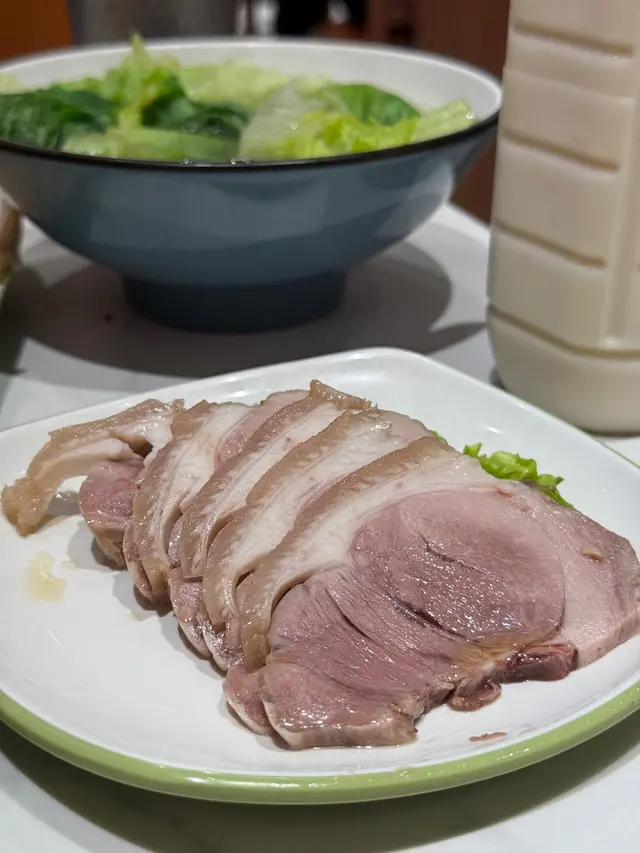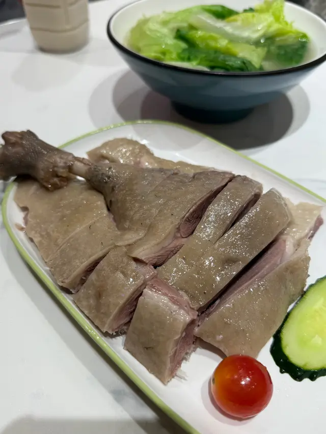 雙人餐都幾抵食,頭盤可3選1,我哋揀咗白鹵水鵝,1/4隻都已經份量十足😚 鵝肉切得厚薄適中,片片都靚仔!鵝肉皮爽肉嫩,透出淡淡白滷水香,完全唔會有油膩感🦆