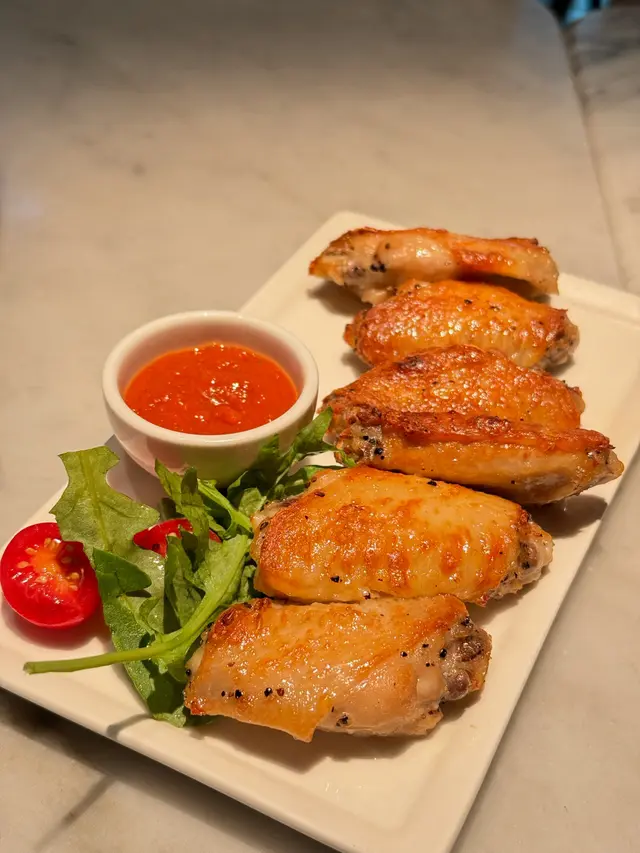 雞翼焗至表面金黃色,熱辣辣脆卜卜,入口鮮嫩多汁,再配上意式辣醬,惹味香口🥰之前既蜜糖芥末醬個人覺得更加夾雞翼,甜中帶小小辣,令到食落更多層次!