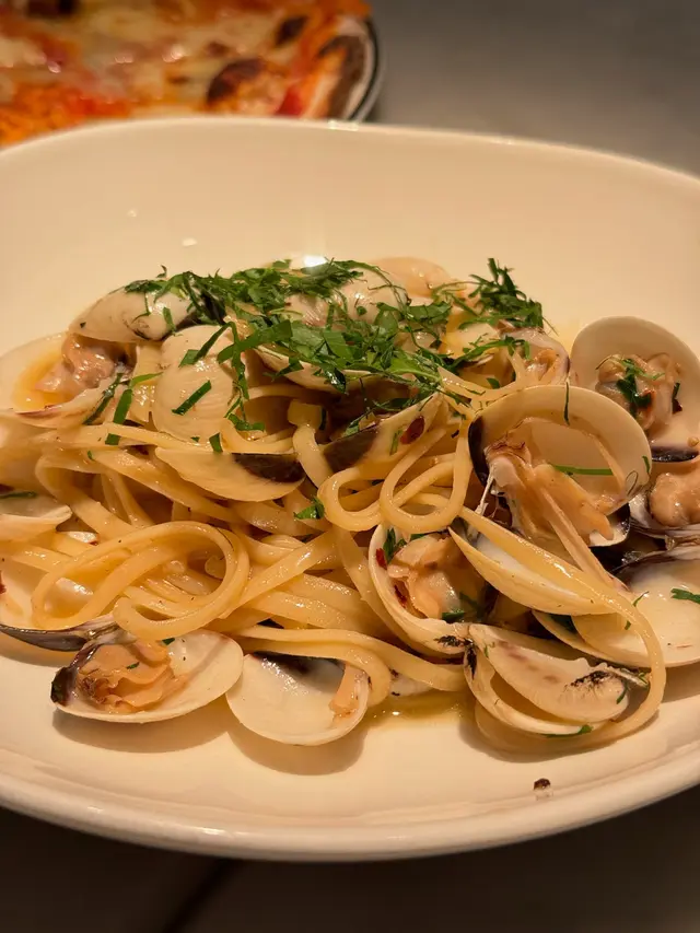 爆香蒜蓉再加上白酒同辣椒碎,香味爆燈🤭扁意粉軟硬適中 ,蜆肉分量合理,兩者配上蒜香同微辣既調味,味道唔錯,係一碟表現中上既意粉,不過食到尾聲會稍嫌油膩左啲,建議夾落碟食!