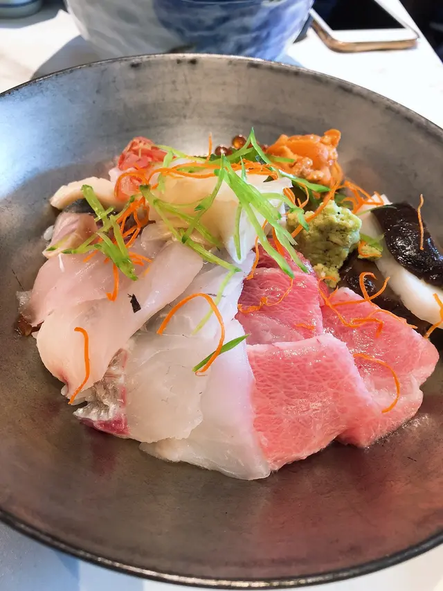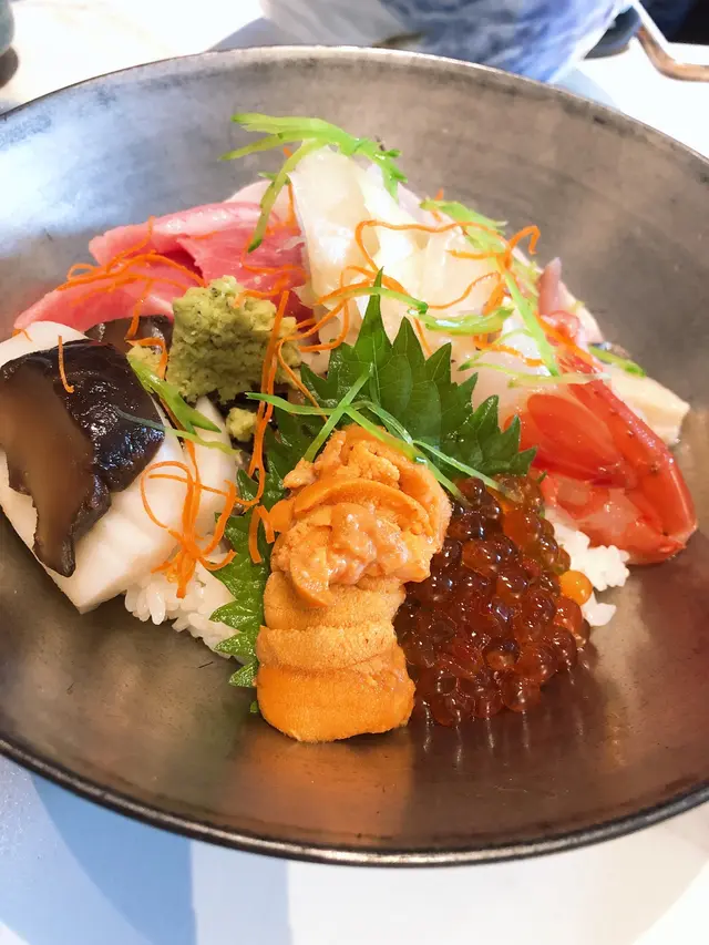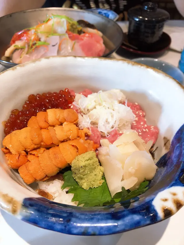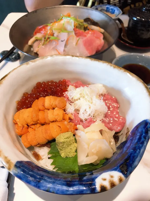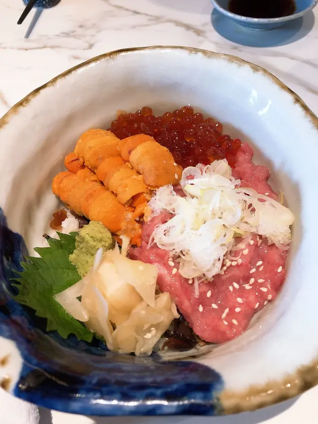 中文意思就是豪華雜錦刺身飯,豪華的定義不單是有各種高級的刺身,其品質亦是非常高水平。刺身包含好幾款,當中的拖羅、海膽以及魚子絕對是比日本食到的可能還更高質。拖羅的肥潤感、海膽和魚子的鮮味,吃完之後還保持在嘴巴裡,鮮味無窮。