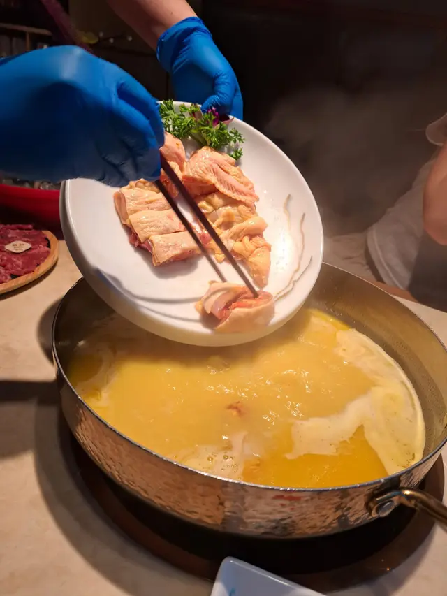 • 先落花膠再落雞件,滾起先食雞,飲靚湯🤤再加湯繼續打邊爐
