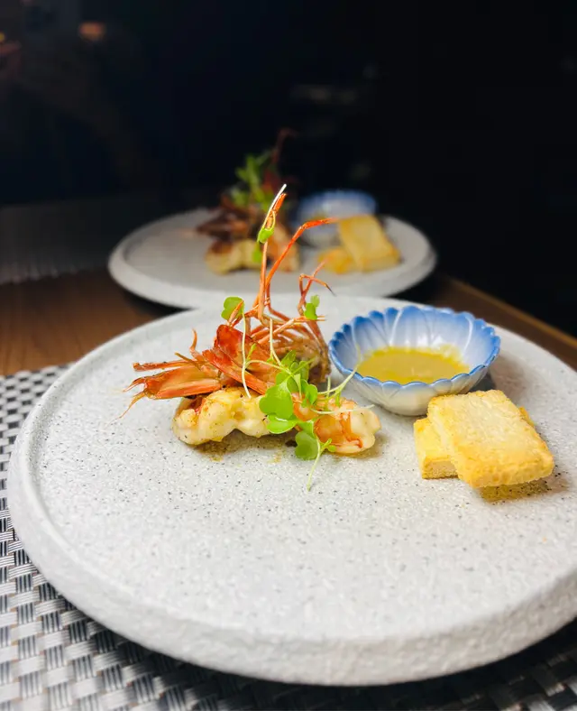 鐵板大蝦🍤爽口彈牙🤩師傅將蝦分成三份再煎至每個部位金黃香脆🥰點埋蟹膏醬蝦味味道天升華又豐富‼️