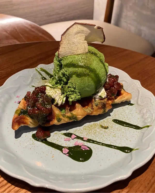 食物方面,我哋點咗「日式免治牛肉三文治配柚子胡椒」、「牛角窩夫配綠茶雪糕」及「溏心蛋炮蛋包」。