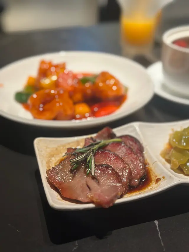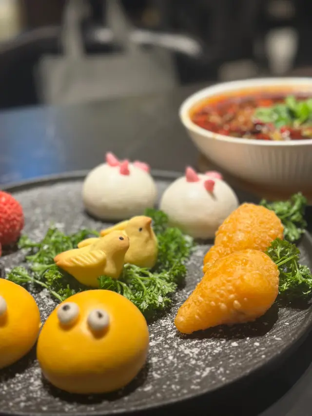 竟然夜晚都有得食點心🙈賣相超可愛😍每一款都整到好精緻!流心奶皇包 脆卜卜嘅荔枝奶皇煎球 (流心奶黃香濃幼滑 甜而不膩 我最愛🩷)忌廉火腿鹹水角 (好似食緊卡邦尼)豬仔叉燒包🐷 同雀仔形狀嘅鳳梨酥🍍好高水準!