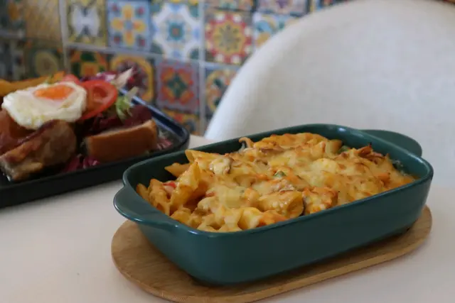 [芝士醬煙三文魚海鮮焗長通粉]