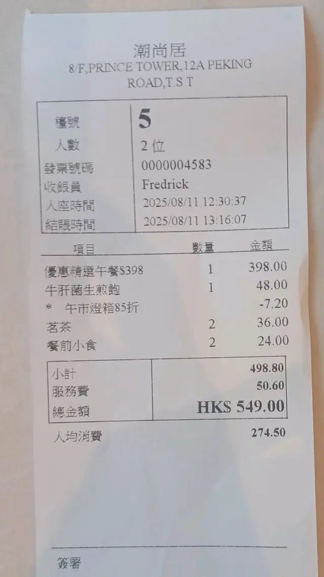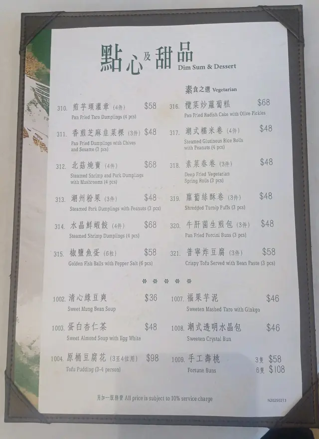 「天花板」級嘅潮汕菜式 AngelaC123等級32025-08-11342 瀏覽 關注 今日11/8/2025(一)放大假,老公陪我去尖沙咀食Lunch ,因有2張$100現金券,就過嚟試吓之前一日經Openrice網上訂座(全日有八五折優惠),大約12:25到達餐廳,我地係第一枱食客(好似包場噤),比左近落地玻璃枱我地坐環境優雅,好有情調,播放著純音樂叫左優惠精選午餐主菜(選二)$398白飯及湯各2滷水鵝肉拼盤有5款:蛋,鹅,豆腐, 腩肉, 腎鹅肉好有咬口,滷水汁可以手工炸蝦蟹棗好脆口,醬汁似橙+蜜,啲汁配搭恰當牛肝菌生煎飽$48咬入去飽內,全是綠色似菜,但唔覺有牛肝菌嘅味道胡椒豬肚湯入口充滿濃烈嘅胡椒味道,好飲以上食評乃用戶個人意見 , 並不代表OpenRice之觀點。讚好分享「天花板」級嘅潮汕菜式 潮尚居 https://s.openrice.com/QrbT0qUTT00檢舉 張貼 評分4味道5環境5服務5衛生3抵食用餐日期2025-08-11用餐途徑堂食人均消費$250 (午餐)