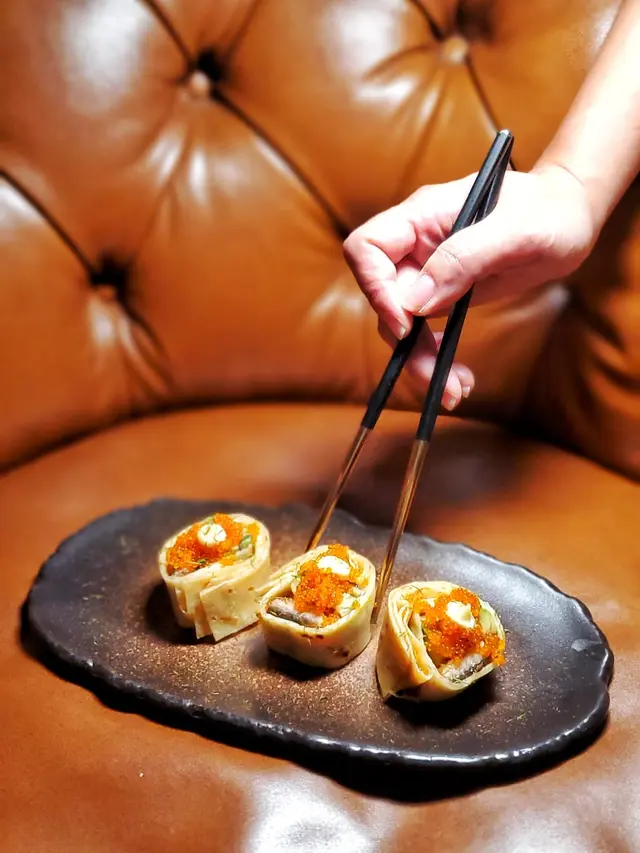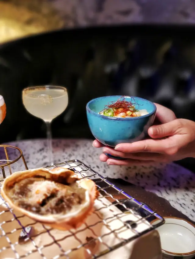餐廳先用鵪鶉蛋攪勻撈埋烏冬,再混合清酒一齊食。成個感覺好新穎創新,