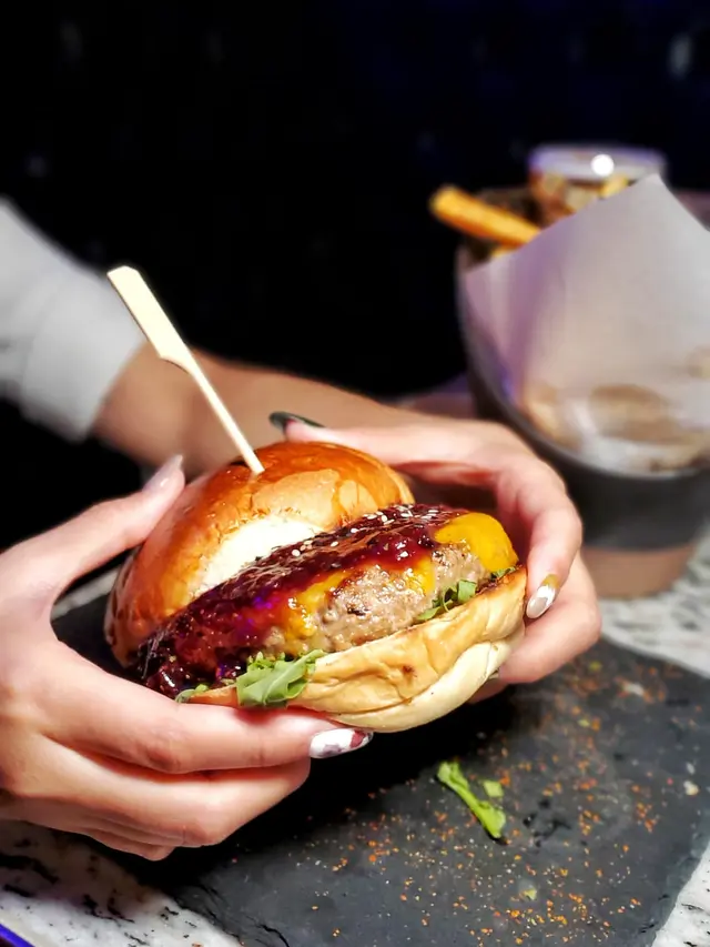 味道多變層次分明;而經火槍燒過既半溶芝士搭配厚厚既牛肉漢堡扒,成個配搭完全無違和感。