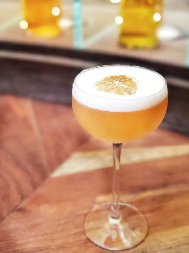 加入橙苦酒、焦糖、香茅水、阿佩羅酒、檸檬汁、安哥斯圖娜樹皮汁混合而成。