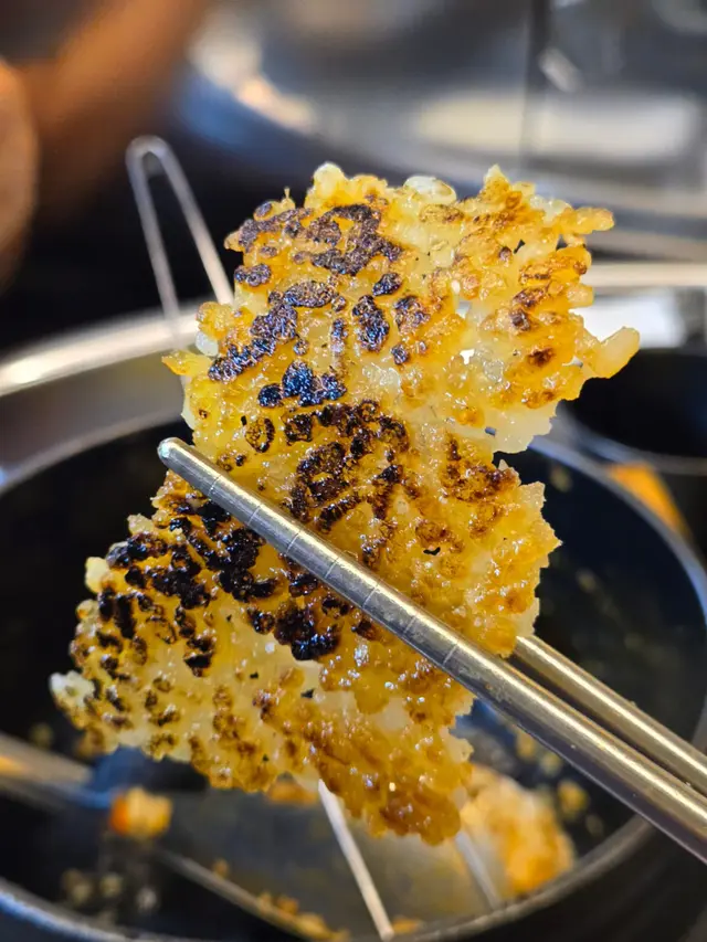 五花肉既肉質紋理都唔錯,肥瘦相間,第一轉店員會幫手燒,初頭燒到兩面金黃就試食咗幾塊😋老闆即刻過黎話燒多陣仲好食,最後幫手燒到有點閃閃發亮,食落口幾焦脆惹味,可以夾埋任Fill既5款韓式泡菜解膩😁