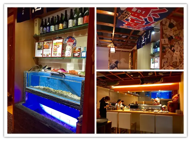 店內的裝修滲透日本小店風味,天花上掛上魚網、貝殼及日本漁旗等與漁港有關的裝飾物,我們恍如置身日本的浜燒店。