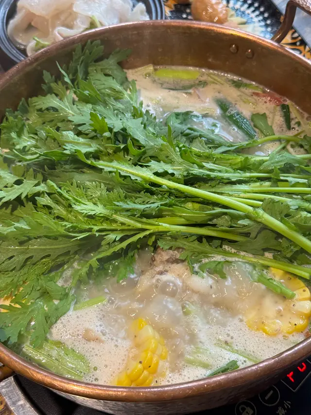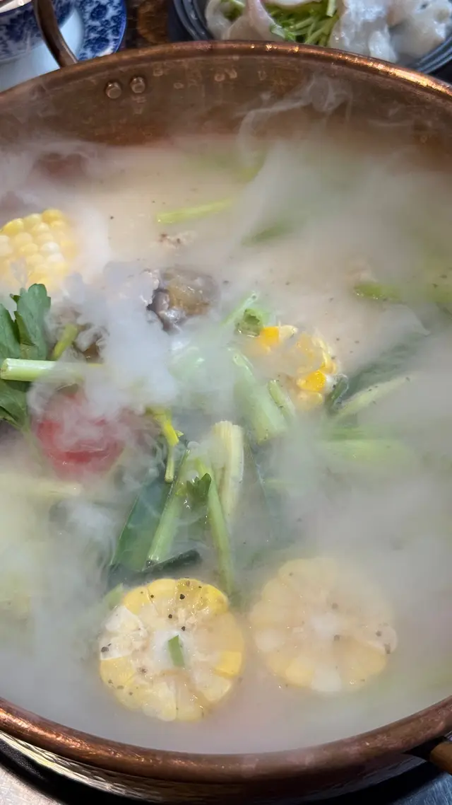 $298「胡椒豬筒骨濃湯鍋」:有好多件大大件嘅豬骨、芹菜、粟米、白蘿蔔、蕃茄,材料豐富🤣;另外,上枱嘅時候,應該湯底有啲乾冰,出晒白煙🤣