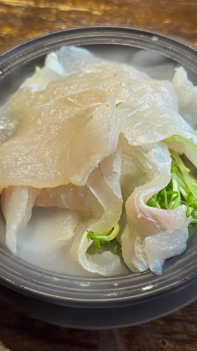 $138「深海龍躉片」:龍躉片肉質夠滑,同埋估計係輕輕醃過,就咁灼熟已經幾好味🤣