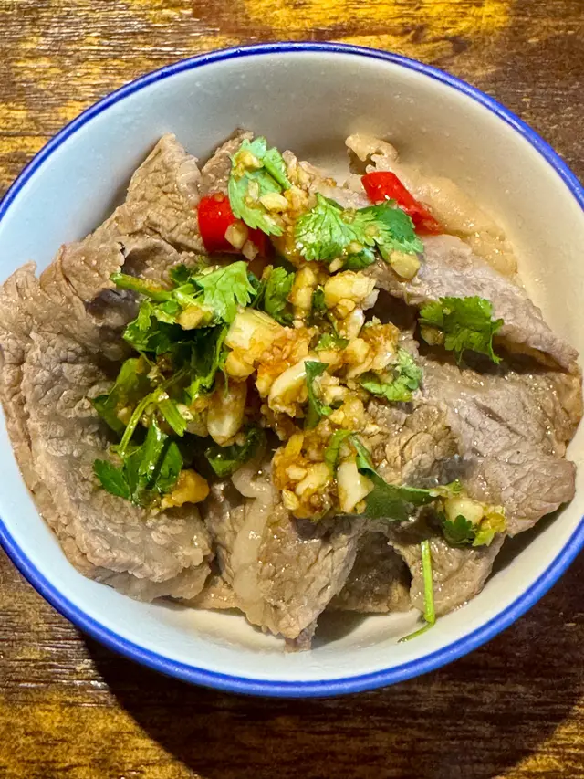 $328「蘋果木煙燻手切牛頸脊」:牛頸脊起雙飛咁就變得大大片,脂肪就分布得夠均勻,肉質軟熟,好牛味👍