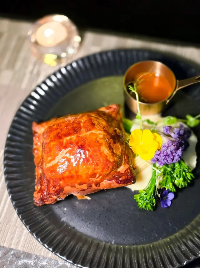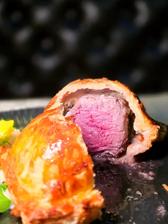 ▫️「阿根廷頂級威靈頓牛柳配紅酒燒汁」外層酥皮夠哂鬆脆,