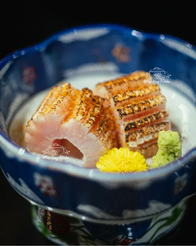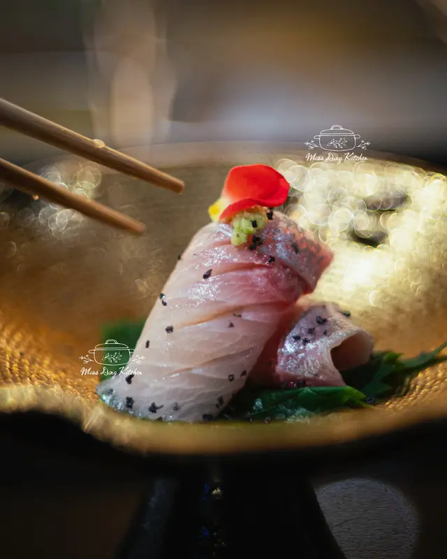 魚身韌中帶脆感,很獨特,裹着紫膽增加口感,灑上竹炭鹽。