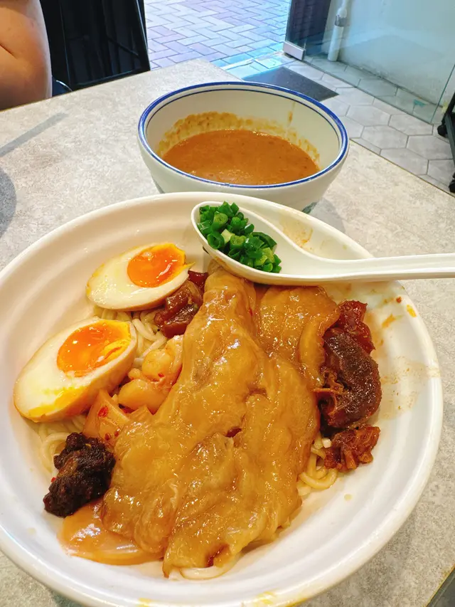 沾麵湯底就好似日本拉麵咁,上檯麵同湯底會分成兩碗,湯頭杰身帶陣陣濃郁沙嗲味,食落唔咸反而突出到沙嗲香味,入面仲加埋粒粒花生碎,比起一般出面茶餐廳食既沙嗲牛麵更加惹味。😋