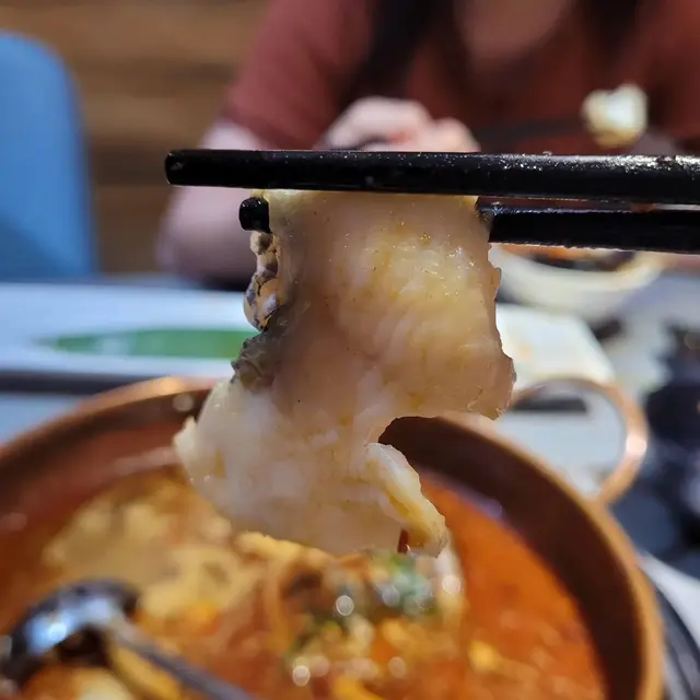 龍躉肉質厚實,入口滑嫩,一吃就能感受到豐盛的海味,細膩的魚肉讓大人和小孩都愛不釋口。蒜蓉泡椒味海龍皇烤魚添入各式海鮮,使湯頭多了幾分鮮醇,揉合成最鮮氣的海龍皇烤魚。