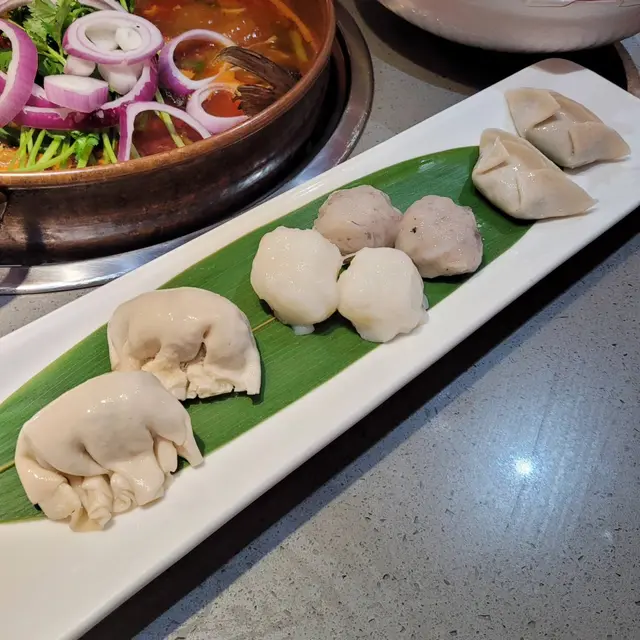 絕對扎實的韭菜餃韭菜好不濃香,手作的鮮蝦水餃包了一整尾的蝦隻,嚐得到蝦的甜美,豬肉的鮮香,自製黑松露墨魚丸的黑松露香氣十足,咬下去還會爆汁,手打彈牙蝦滑用料實在,咀嚼時有實在的蝦味和彈性,好吃到讓我們感到驚艷,名副其實地表最強手工火鍋配料。