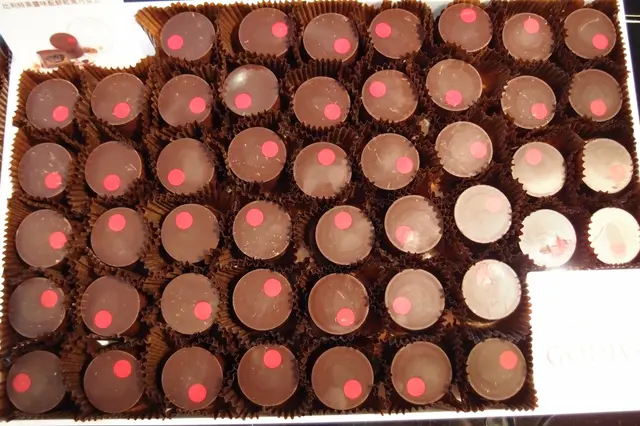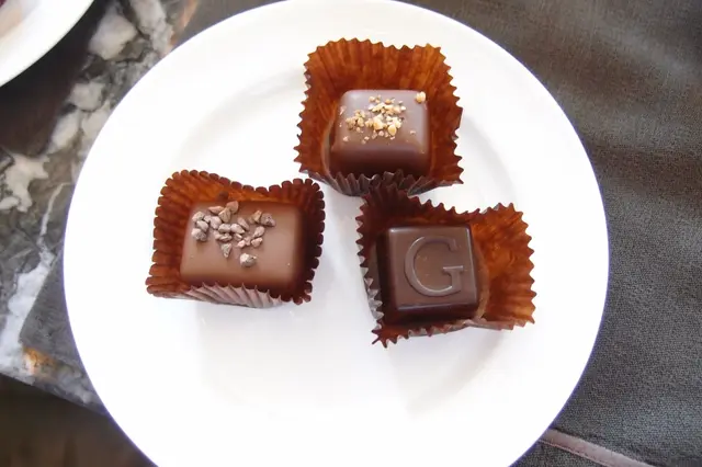 (美國)焦糖牛奶巧克力餡餅以焦糖黑忌廉醬包裹了無麵粉可可海綿蛋糕及38%哥斯達黎加牛奶巧克力醬,再加入杏仁碎粒,在醇厚的巧克力味道中,注入了杏仁的芳香。