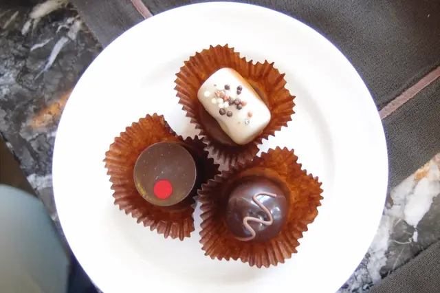 (中國)四川花椒煙燻紅茶馬卡龍以花椒作外層,帶來川菜的口味,有特色,更添上少許玩味,中間的朱古力醬是煙燻紅茶及64%哥斯達黎加黑朱古力,創新的配搭但絲毫不見衝突。