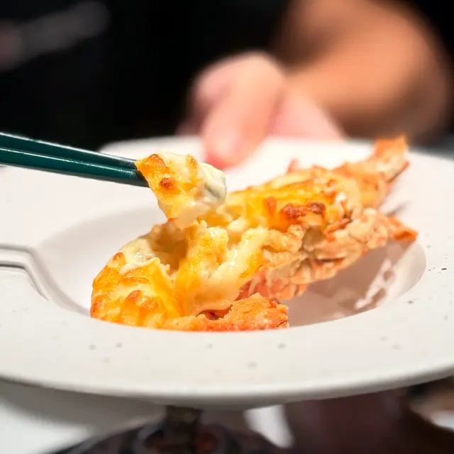 鮑魚厚切得宜,刀工在側面劃出細密菱格,使鮑汁徹底滲透。口感介於柔韌與軟糯之間,湯汁收得極濃卻未掩蓋干鮑本味,搭配的菜心焯得翠綠爽脆。