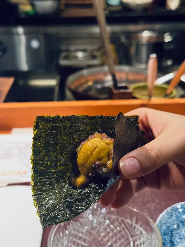 海膽極鮮甜(份量仲要多💛),配撈左醃蘿蔔嘅和牛他他,鮮味十足,口感滑到一個點。而1080menu個邊,煙燻味好重,和牛變得鹹香,再加上海膽同魚子醬,我懷疑我吞左成個海洋🌊落肚🤤