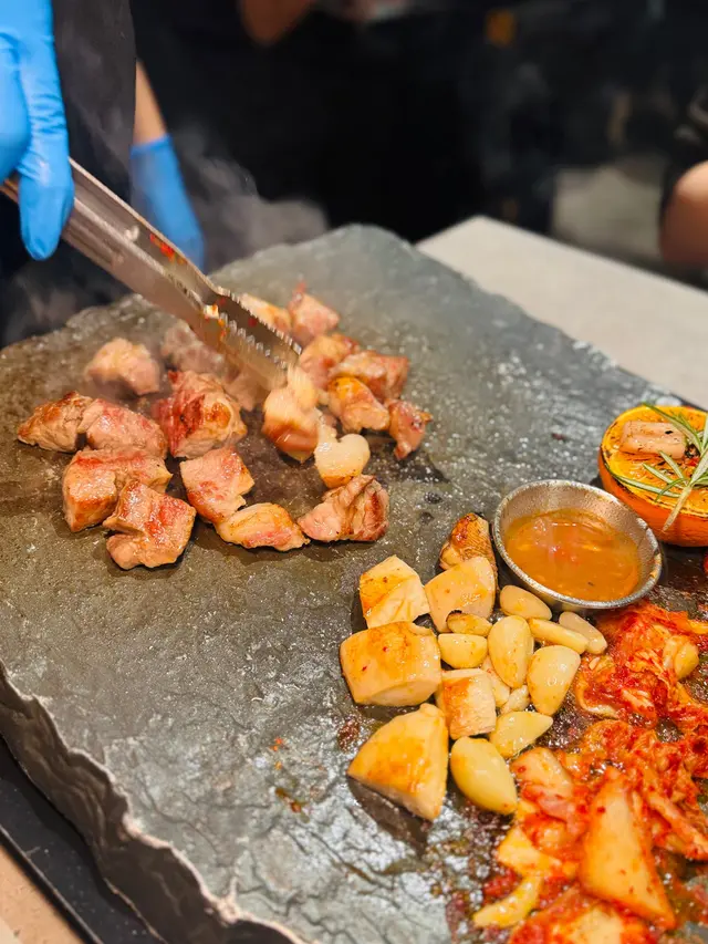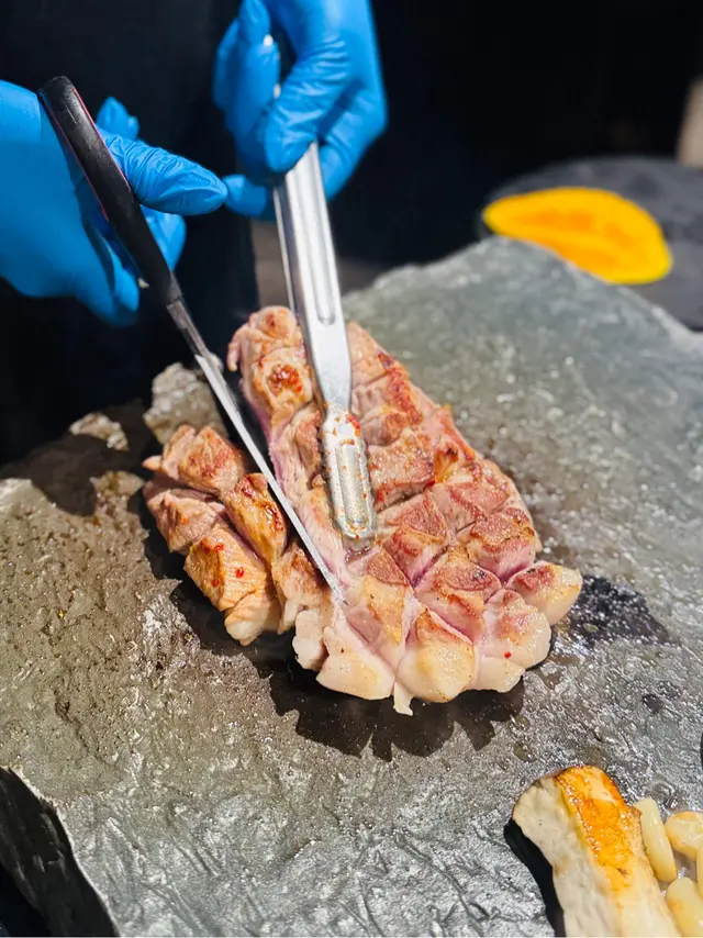 唔使飛濟州都食濟州豬🐷,最正係有專人幫手用石板燒烤,坐定定等食就得啦😚~