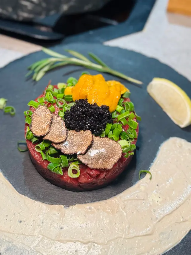 韓牛他他混和黑松露香氣,仲有海膽同魚子。口感鮮甜又豐富!開胃首選✨