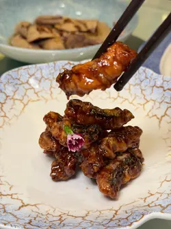 🔸黑醋脆鱔球 ($208) 必食推薦!鱔球炸到金黃,外層嘅脆漿薄如蟬翼,形成咗一口「玻璃脆」嘅口感。咬開裏面嘅鱔肉仍然嫩滑彈牙,一啲泥味都冇。酸甜醒胃嘅黑醋汁掛喺面頭,味道平衡得剛剛好